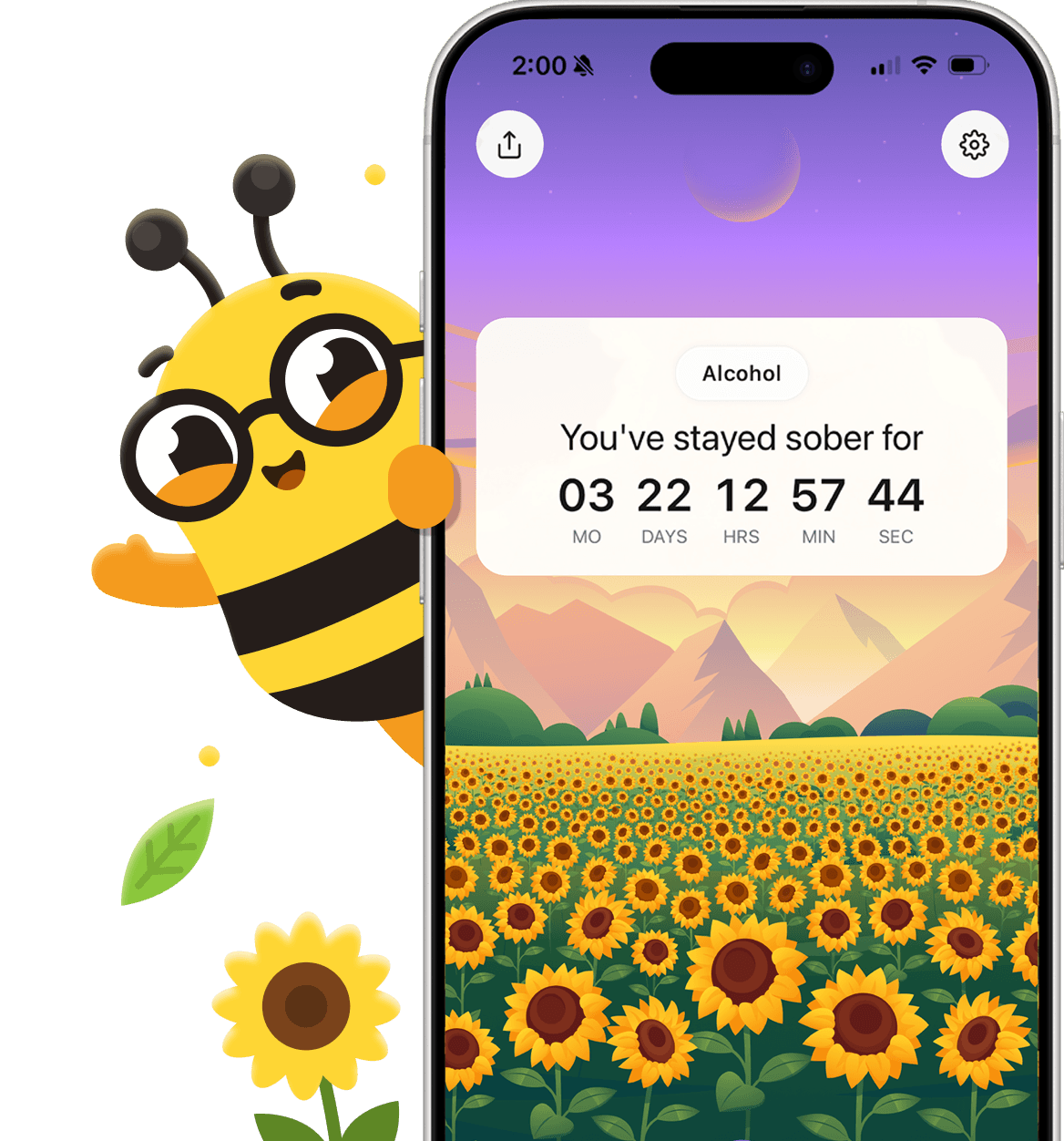 Every day you stay sober you earn a sunflower. Keep track of your sobriety with Visual Progression Tracking.
